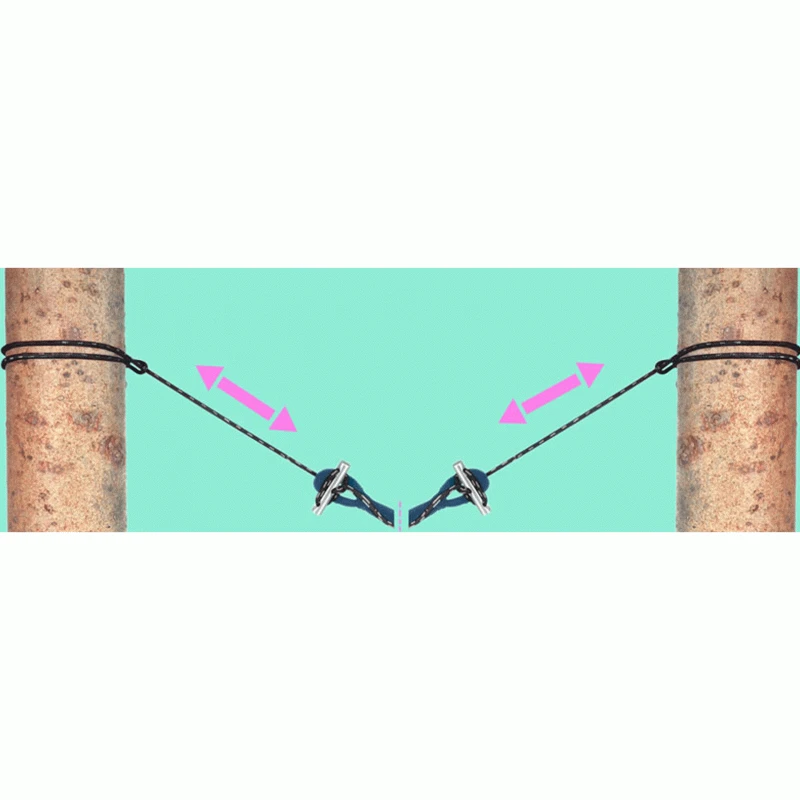 Ein praktisches Zubehör für Hängematten. Denn irgendwie muss man diese ja passend abspannen können. Vorbei die Zeiten mit Seil zu kurz, Seil zu lang, Knoten auf, Knoten zu, Mist Knoten geht gar nicht mehr auf. Eigentlich wollte ich ja nur entspannt in meiner Hängematte liegen. Das Set besteht aus 2 Seilen mit 3 Metern Länge und leichten Alustiften zum einstellen der passenden Länge. Hier in einer sehr leichten Ausführung, auch für Rucksackreisende.