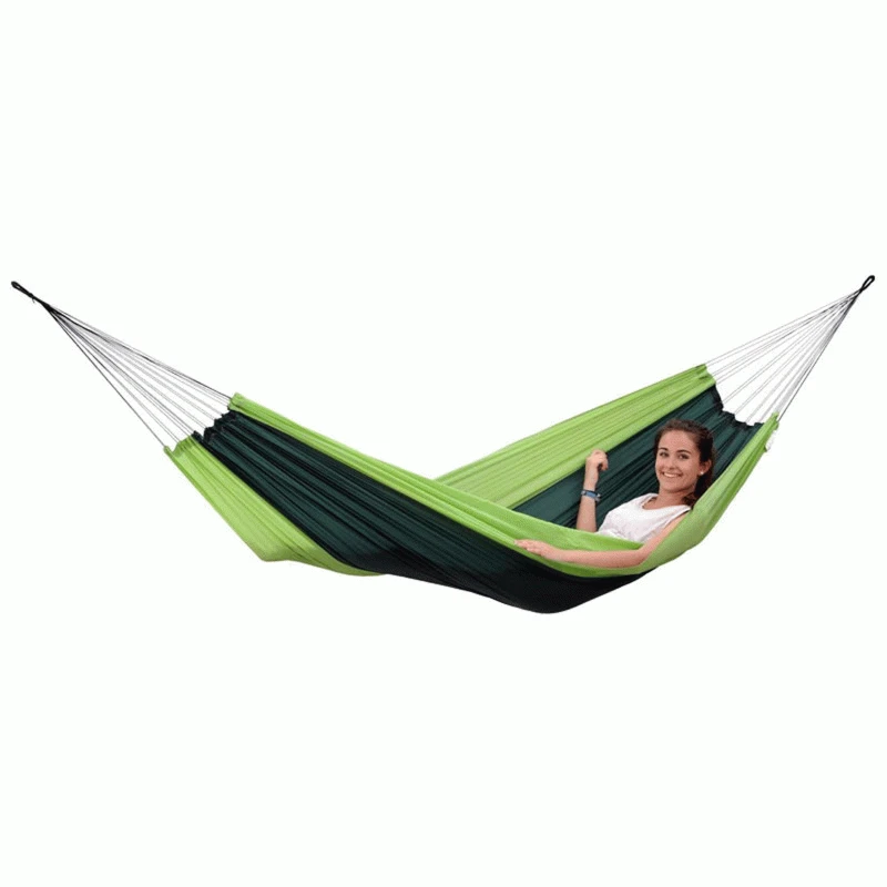 Die Silk Traveller ist eine ultraleichte Hängematte aus Fallschirmseide, welche sich sehr weich anfühlt, aber dennoch robust und strapazierfähig ist. Außerdem ist das Material atmungsaktiv, so dass Sie nicht schwitzen, wenn Sie bequem in der Hängematte liegen um zu relaxen. Die Matte verfügt über viele Aufhängungsschnüre, so dass sie sich möglichst breit auffalten kann um eine breite Liegefläche zu schaffen. Durch das leichte Material eignet sich die Hängematte besonders gut für den Urlaub.