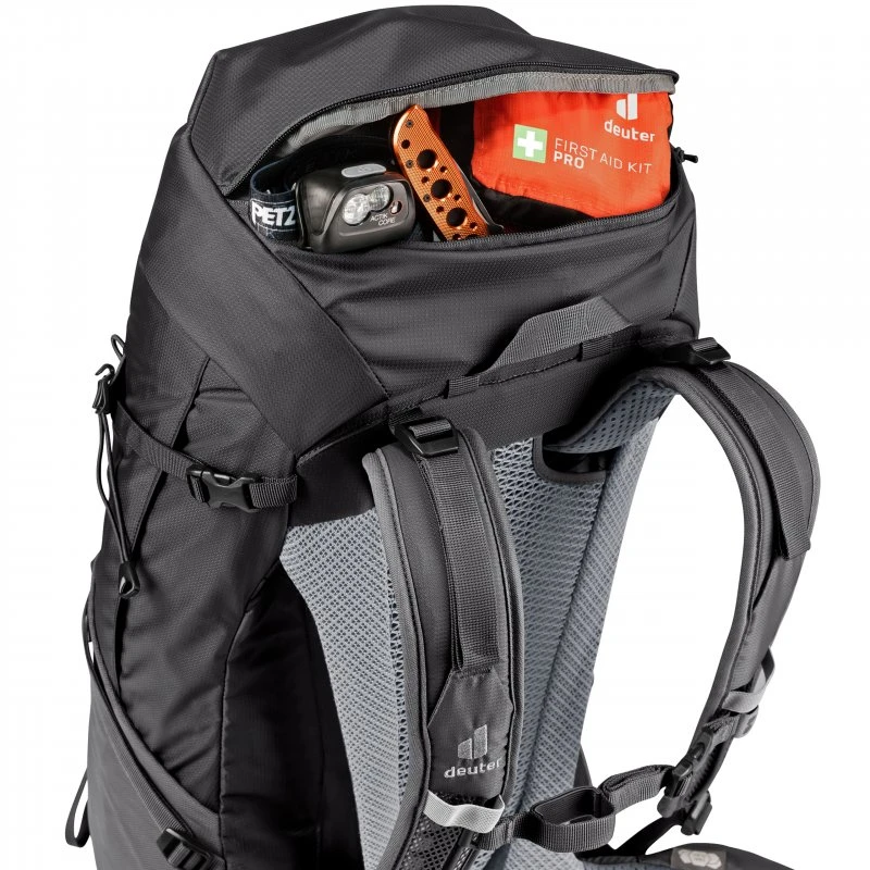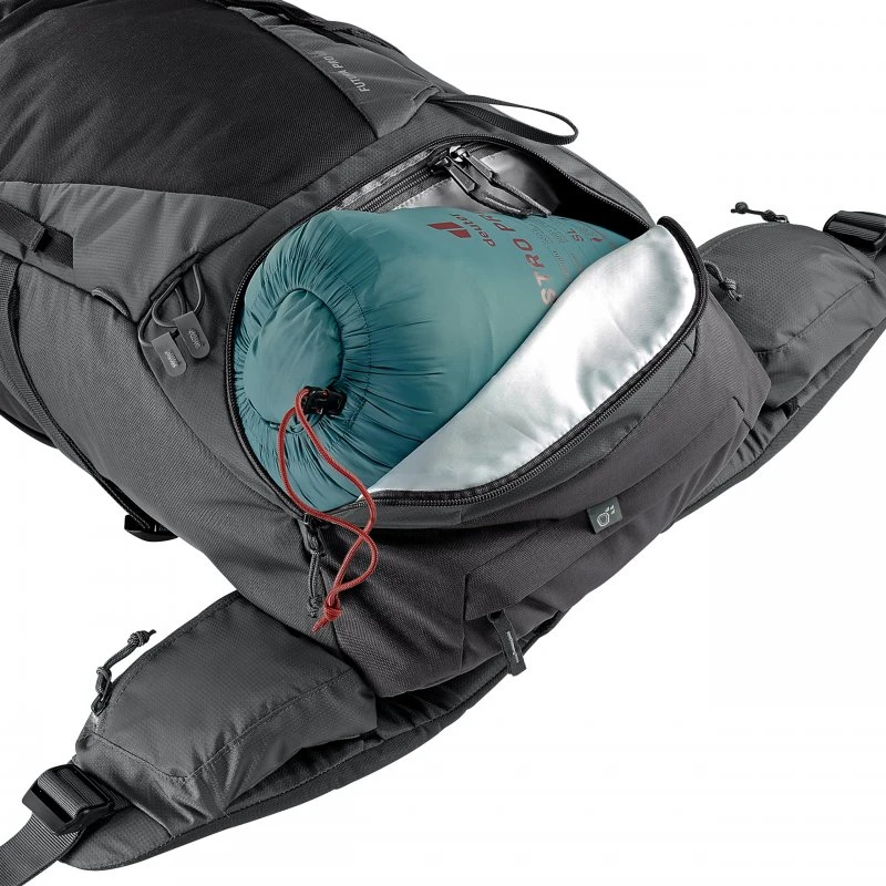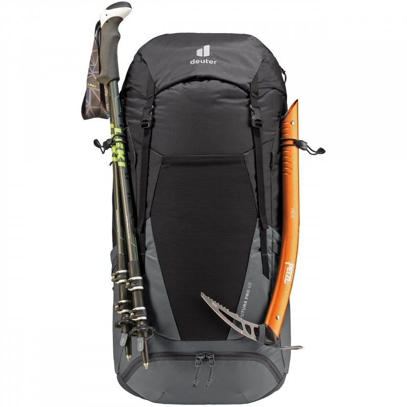 Die Futura-Serie ist ein echter Klassiker und dies nicht ohne Grund. Die Außenmaterialien dieses Rucksacks bestehen aus besonders stabilen Polyestergarnen namens 210D PA RECYCLED und 600D PES. Der Futura Pro 40 besitzt ein Gesamtvolumen von 40 Litern und bietet viel Stauraum, sowie ein unterteilbares Schlafsackfach am Boden. Im Hauptfach finden Kleidung, Kosmetikartikel und Ausrüstung ideal Platz. Im Deckelfach und den Seitenfächern können Proviant und weitere Ausrüstungsgegenstände ideal untergebraucht werden. Außen befinden sich Befestigungsmöglichkeiten für die Trekkingstöcke und den Eispickel. Kleinteile oder Dinge die schnell greifbar sein sollen, können in die Taschen an den Hüftflossen verstaut werden. Damit der Rucksack sich auch schwer beladen noch gut und bequem trägt wurde das Tragesystem mit ausreichend Polsterung versehen. Das hinterlüftete Tragesystem sorgt aufgrund des neuartigen Mesh-Materials für maximale Lüftung des gesamten Rückens. Im Bereich des Lendenwirbels befindet sich zur Stabilisierung eine Polsterung mit leichter Vorwölbung. Die beweglichen VariFlex ECL Hüftflossen mit ergonomischen und gut ausgestatteten Polstereinsätzen bieten einen besonders hohen Tragekomfort und verteilen die Last gleichmäßig auf die Hüften. Die anatomisch geformten Schultergurte verfügen ebenfalls über eine gute Polsterung und sind zur besseren Regulierung mit Lageverstellriemen ausgestattet. Luftschlitze in der Polsterung verbessern die Luftzirkulation. Damit bietet der Futura Pro alles, was auf einer Mehrtagestour oder Hüttentour benötigt wird. Hinweis: Der Rucksack wird ohne Inhalt geliefert, die Abbildungen dienen nur als Beispiel.