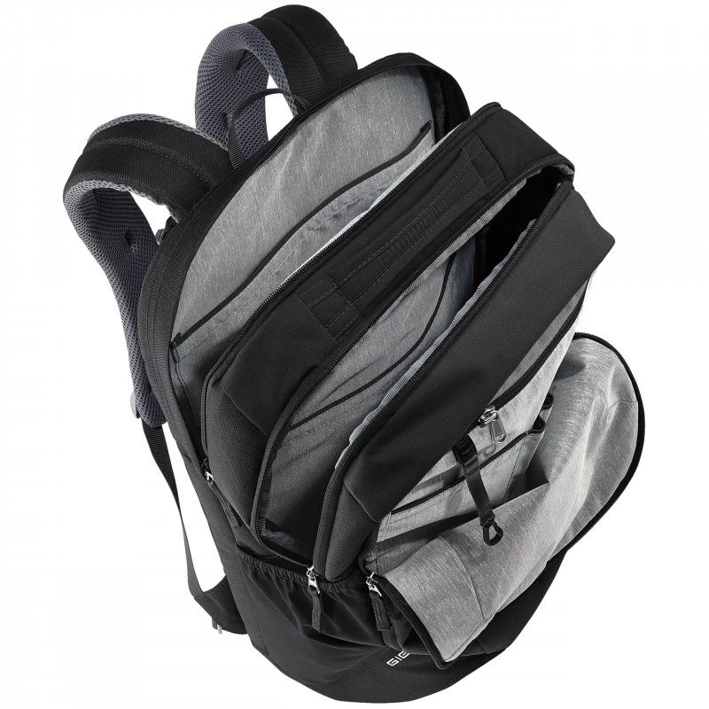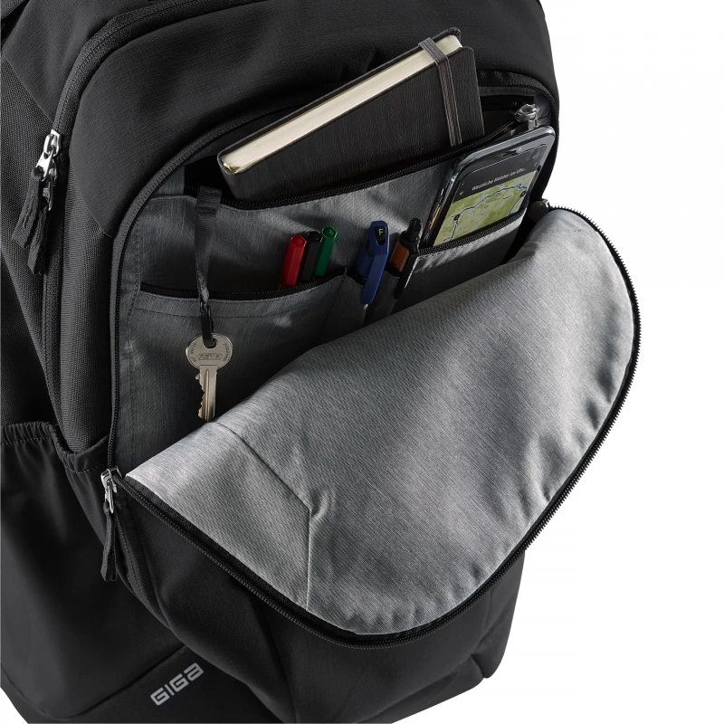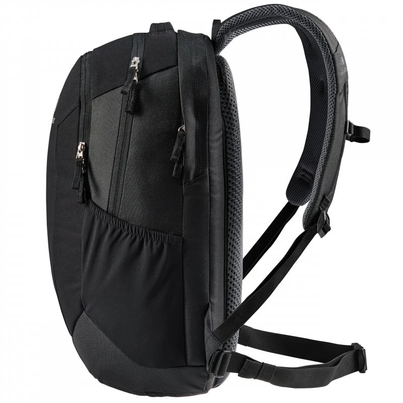 Der Deuter Giga ist der optimale Rucksack für Studenten, Schüler oder all jene die viel unterwegs sind und ihr Arbeitsmaterial gerne überall dabei haben. Denn der Giga ist ein kompakter Rucksack mit einem separatem gepolstertem Fach an der Rückseite für einen Laptop bis zu einer Größe von 15.6 Zoll. Er hat ein Gesamtfassungsvermögen von 28 Litern. Das 300D PES RIPSTOP, sowie das etwas feinere 600D PES Polyestergewebe aus dem der Rucksack besteht ist sehr robust, reißfest und mit einer PU-Beschichtung versehen, welche ihn wasserfest macht. Das große Hauptfach ist sehr geräumig, so dass Sie locker einen dicken A4 Ordner unterbekommen. Er wird durch einen Doppelreißverschluss und zwei Klipps gesichert. Das Frontfach verfügt über einen Organizer mit einer Smartphonetasche, Stiftfach, Meshfach, einem Schlüsselanhänger, sowie einer Safetytasche mit Reißverschluss. Seitlich bieten sich zwei Unterbringungsmöglichkeiten für Trinkflaschen. Der Boden des Rucksacks ist verstärkt. Das Rückenteil ist ebenfalls gut verstärkt und verfügt über eine dicke Polsterung mit Lüftungsschlitzen und Mesh, was für eine gute Luftzirkulation sorgt. Die Schultergurte sind ergonomisch geformt und gepolstert. Ein Brustgurt und ein abnehmbaren Bauchgurt sorgen für eine optimale Lastenverteilung. Hinweis zur Abbildung: Das Rucksack wird ohne Inhalt geliefert, die Bilder dienen nur zur Veranschaulichung.