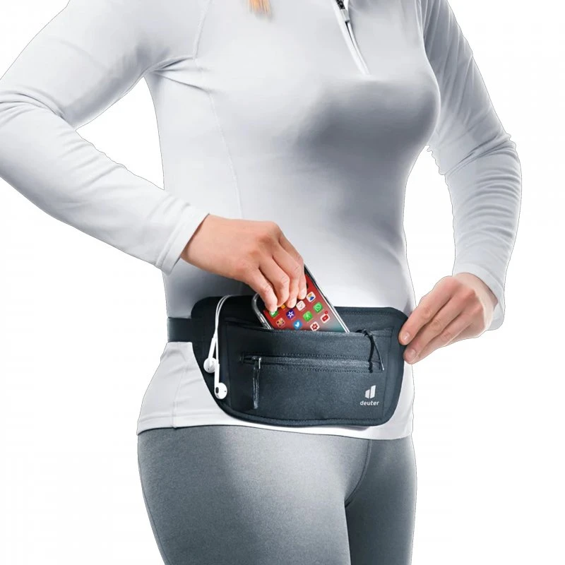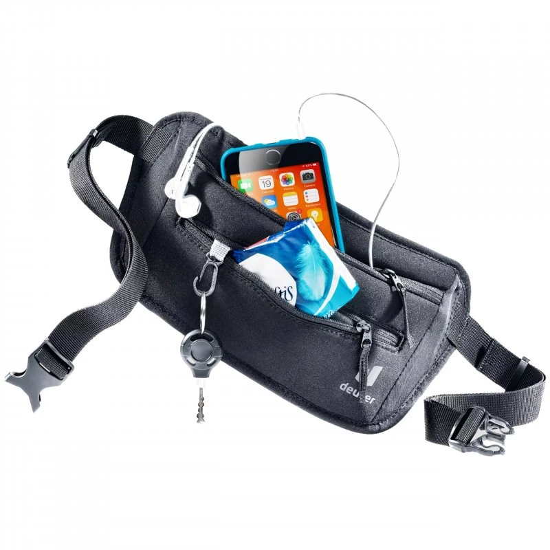 Die Deuter Neo Belt II ist eine super leichte Hüfttasche aus Neopren, die sich ideal für sportliche Aktivitäten eignet. Sie liegt eng am Körper an, sodass auch beim Joggen mit dieser Hüfttasche nichts stört. Dank eines umweltverträglichen DWR-Finishs ist sie wasser- sowie schmutzabweisend, damit der Inhalt gut geschützt bleibt. In den zwei Reißverschlussfächern finden das Smartphone (je nach Modell bis zu 7 Zoll) und Schlüssel optimal Platz. Im Inneren der kleinen Tasche befindet sich ein Schlüsselclip, die größeren Tasche ist mit 2 Netzinnenfächern und dem Kopfhörerausgang ausgestattet. Hinweis: Die Tasche wird ohne Inhalt geliefert.