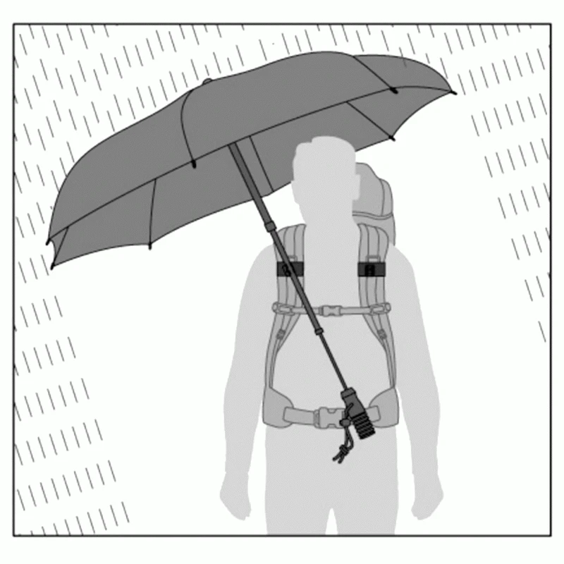 Ein Regencape ist zwar gut, aber nicht immer die angenehmste Methode sich vor Regen zu schützen. Da wäre doch ein Regenschirm manchmal schöner, aber der muss nun mal gehalten werden, in diesem Fall aber NICHT von Ihnen! Eine tolle Konstruktion macht es möglich, dass der Schirm ganz einfach am Hüftgurt eines jeden Rucksacks befestigt werden kann. So haben sie beide Hände frei, können eine Karte lesen, Wanderstöcke benutzen oder einfach die Arme locker hängen lassen und die Landschaft genießen. Wenn sie ohne Rucksack unterwegs sind, kann der Schirm auch an dem Tragegurt-System von EuroSCHIRM befestigt werden. Der Schirm ist für den Outdooreinsatz konzipiert und entsprechend robust gearbeitet. Das Gestell und der Teleskopschaft besteht aus leichtem, flexiblem und zugleich extrem stabilem Fiberglass. Der Schirm selbst ist aus einem hochreißfestem Polyestergewebe mit Teflon®-Behandlung gefertigt. Doppelte Nähte zwischen den Segmenten machen das Ganze noch stabiler. Der Schirm verfügt natürlich auch über einen normalen, gut in der Hand liegenden Griff aus leichtem EVA, somit kann er auch als normaler Trekkingschirm eingesetzt werden.