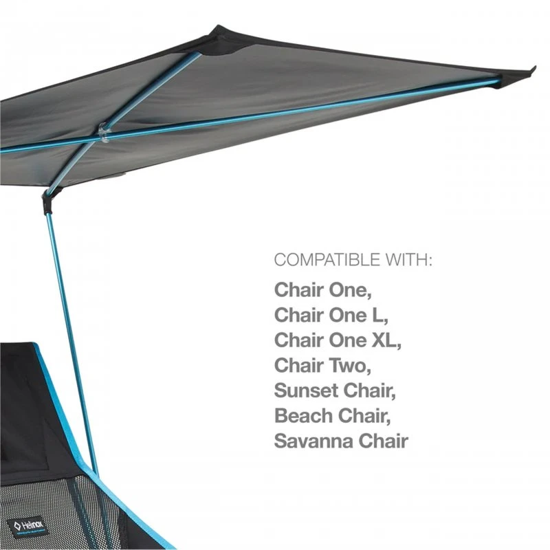 Das Personal Shade R1 von Helinox kann kinderleicht am Stuhl befestigt werden und spendet angenehmen Schatten. So können Sie in Ruhe Ihr Buch lesen und den Tag genießen. Das Gestänge besteht wie der Stuhl auch, aus leichten sowie robusten Stangen mit DAC-Aluminiumlegierung. Das Segel ist aus Ripstop-Nylon gefertigt und schützt zuverlässig vor Strahlen. Der Sonnenschutz ist passend für: Chair One, Chair One L, Chair One XL, Chair Two, Sunset Chair, Beach Chair, Playa Chair und den Savanna Chair die ab 2018 hergestellt wurden. Das Sonnensegel wird in der Farbe „black“ geliefert