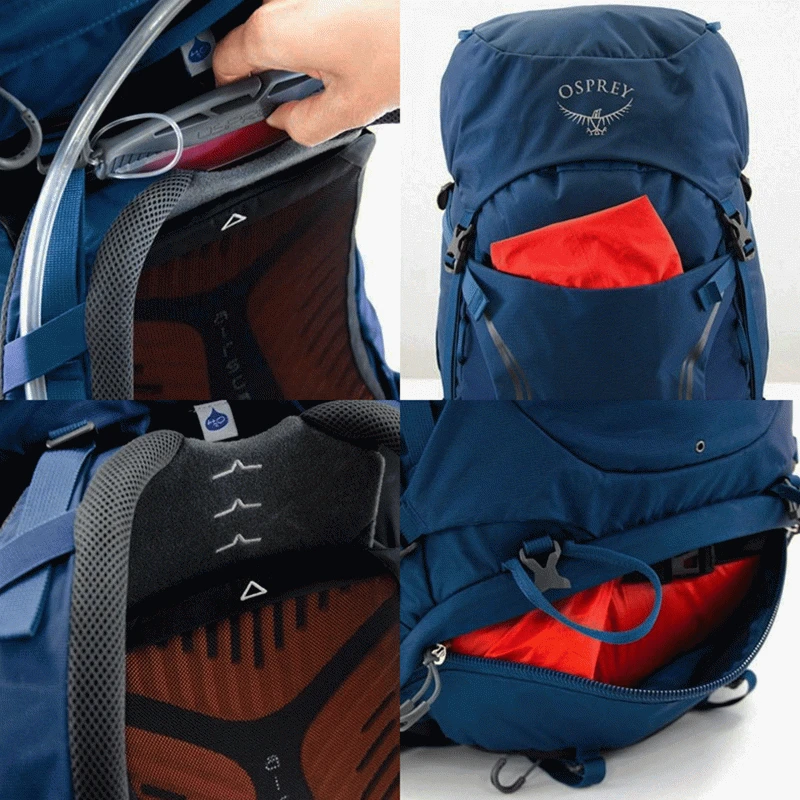 Wenn Sie einen multifunktionalen Wanderrucksack suchen der Sie niemals im Stich lässt, dann sind sie beim Osprey Kestrel 38 richtig. Dieser Rucksack ist durch seinen Schnitt und die durchdachten Lösungen vielseitig verwendbar. Der Kestrel 38 bietet nicht nur die üblichen Details wie z.B.: Befestigungsschlaufen für Trekkingstöcke, Pickel, Isomatte, ein geräumiges Deckelfach, Regenhülle, sondern auch eine Reihe weiterer durchdachter Details. Besonders pfiffig sind das unterteilbare Innenfach sowie der seitliche Zugang zum Hauptfach. Außerdem verfügt der Kestrel 38 über ein separates Fach für eine Trinkblase außerhalb des eigentlichen Rucksackfaches. Damit bleiben Ihre sieben Sachen auch trocken, wenn mal etwas undicht wird, zudem ist das Nachfüllen des Trinksystems viel einfacher zu erledigen. Ein besonderes Highlight haben sich die Tüftler bei Osprey für die Wanderstöcke ausgedacht. Diese kann man ohne Absetzen des Rucksackes an diesem fixieren. Werden die Stöcke während der Tour kurzzeitig nicht benötigt, so kann man diese einfach an den elastischen Schlaufen an Rucksack und Schultergurt unterbringen. Das Tragesystem ist ebenso gut durchdacht und zeichnet sich durch die höhenverstellbare Rückenplatte aus, sodass die Rückenlänge anpassbar ist. Für eine gute Luftzirkulation, auch an heißen Tagen, sorgen die hinter Mesh versteckten AirScape Lüftungskanäle, welche für eine angenehme Hinterlüftung sorgen. Die Schultergurte und Hüftflossen verfügen über eine formstabile und anatomisch angepasste Polsterung mit einem atmungsaktiven Bezug. Auf diese Weise wird die Last des Gepäcks gleichmäßig verteilt um einen bestmöglichen Tragekomfort zu erreichen.