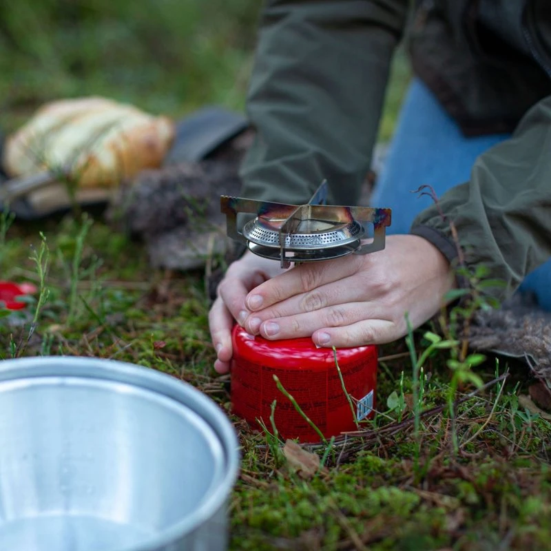 Der Mimer Stove Duo von Primus ist klein, robust und flexibel. Der praktische und stabile Gaskocher kann sowohl für Schraubgaskartuschen als auch für gewindelose Kartuschenventile genutzt werden und ist durch seine einfache Handhabung schnell einsatzbereit. Durch die robusten Topfauflagen und die breite Flamme eignet sich der Primus Mimer Stove Duo perfekt für das Kochen für bis zu drei Personen. Mit seiner Leistung von 2.800W bringt er einen Liter Wasser in weniger als vier Minuten zum Kochen. Der Topfträger wirkt gleichzeitig als Windschutz für die Flamme, so kann schnell und zuverlässig gekocht werden. Sie planen ein mehrtägiges Outdoor-Abenteuer, ein Picknick oder möchten einfach für den Notfall gerüstet sein? Dann sind Sie mit dem Mimer Stove Duo auf der sicheren Seite.