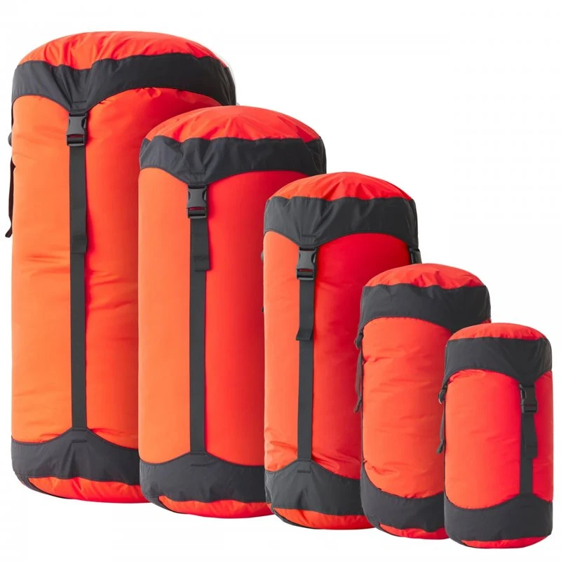 Der Lightwight Compression Säcke sind die ideale Lösung, wenn Volumen und Gewicht gespart werden soll. Dieser besonders leichte Packsack ist in der Lage das Volumen um etwa ein Drittel zu komprimieren. Dank der Gurte lässt sich flexibler Inhalt wie Kleidung oder Schlafsack zusammen zurren, sodass mehr Platz im Rucksack übrig bleibt für andere wichtige Ausrüstungsgegenstände. Die Packsäcke sind trotz des geringen Eigengewichts extrem robust und strapazierfähig und bestehen aus einem recyceltem 70D-Nylon mit C0-PFC-freier DWR-Beschichtung. Dsd Innenmaterial ist für eine bessere Sichtbarkeit des Inhalts hell und lichtreflektierend. Wasserdicht sind die Packsäcke auch noch, denn sie sind mit einer hochwertigen PU-Beschichtung versehen.