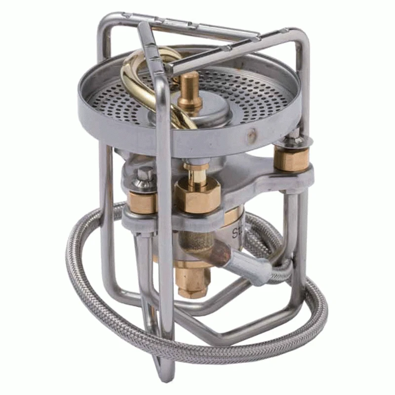 Der SOTO StormBreaker ist ein echtes HighTech Gerät und jeden Cent wert! Wer weit gereist ist kann bestätigen, dass nicht in allen Ländern und nicht bei jeder Gegebenheit mit Gas gekocht werden kann. Ein Benzinkocher macht viel Geruch und ist umständlich in der Handhabung bis er ein mal läuft. Mit dem StormBreaker nimmt diese Odyssey ein Ende, denn er kann mit Gas kochen, als auch mit Benzin und dies ganz ohne vorheizen oder einen Düsenwechsel. Auch unterschiedliche Wetter- und Temperaturbedingungen machen diesem Kocher nichts aus. Egal ob Sie Ihr Mahl im sommerlichen Blütenmeer oder bei Sturm und Schnee zubereiten, der StormBreaker lässt Sie nicht im Stich. Zudem wurde er mit dem ISPO Award 2019 ausgezeichnet und dies zu Recht! Das Kochgeschirr liegt tief am Brennerkopf mit einer Hauptflamme von über 300 Mikroflammen auf. Der Kopf hat eine flache und konkave Form, sodass die Flamme dadurch sehr windgeschützt ist, eine Konstruktion die bereits dem WindMaster von Soto einige Auszeichnungen eingebracht hat. Der StormBreaker bietet eine schnelle Kochzeit bei sparsamen Gasverbrauch. Die Menge des verbrauchten Kraftstoffs hängt von der Art des Kraftstoffs ab. Wenn Sie eine flüssige Mischung verwenden, verbraucht sie ca. 250 Gramm in etwa 48 Minuten. 480 ml Benzin halten in etwa 1.5 Stunden. Der klein zusammenklappbare Kocher besteht aus: Edelstahl, Aluminium und Messing. Er ist ausgestattet mit rutschfesten Topfstützen und einem Verbindungschlauch mit Metallhülle einschl. Ventilschutzkappen. Zum Set gehört außerdem eine intelligente Pumpe, eine wärmereflektierende Folie, ein Wartungs-Kit, sowie eine Tragetasche. Weiterhin noch ein Gaskartuschen-Halter mit dem die Kartusche zur besseren Entleerung auch auf dem Kopf noch sicher steht.