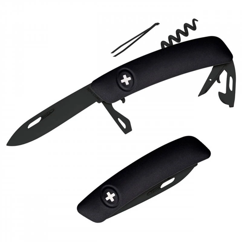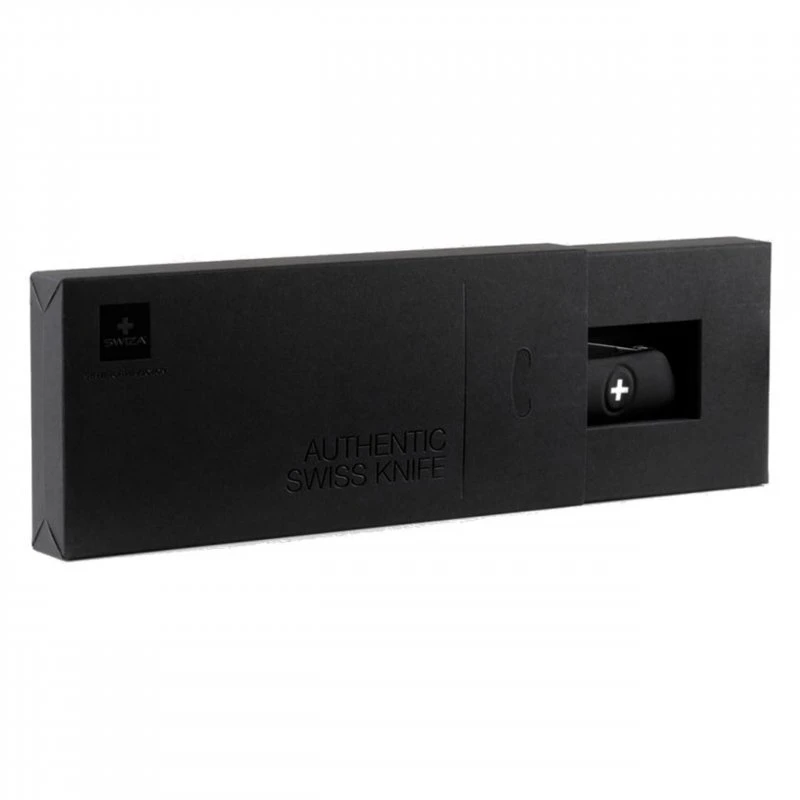 Das ?kleine Schwarze? gibt es nun auch für die Hosentasche und stammt aus dem Hause SWIZA. Dieses wirklich schicke klassische Schweizer Taschenmesser ist komplett schwarz und verfügt über die wichtigsten Funktionen, die man im Alltag und beim Campen benötigt. Das moderne Design macht nicht nur optisch Spaß, es liegt auch einfach super in der Hand, auch weil die schwarze Soft-Touch Schale mit einer robusten Anti-Rutsch Oberfläche ausgestattet ist. Zudem macht die leichte Krümmung des Messers ein müheloses Aufklappen aller Werkzeuge möglich. Alle Edelstahlelemente sind mit einer hoch widerstandsfähigen, tiefschwarzen Hightech-Beschichtung aus Polytetrafluorethylen (PTFE) ausgestattet. Es besitzt eine extrem scharfe und 75 lange Klinge aus Edelstahl 440 (gehärtet auf 57 HRC). Die Klinge ist arretiert und lässt sich durch einen festen Druck auf das Schweizer Markenzeichen von SWIZA wieder einklappen. Zudem ist das Messer noch mit einer Stech- und Bohrahle, einem Kombi-Werkzeug mit Flaschenöffner/Schlitzschraubenzieher Nummer 3 sowie vielen weiteren wichtigen Tools ausgestattet. Das Taschenmesser kommt in einer edlen, ebenfalls schwarzen Schachtel zu Ihnen und eignet sich auch ideal als Geschenk.