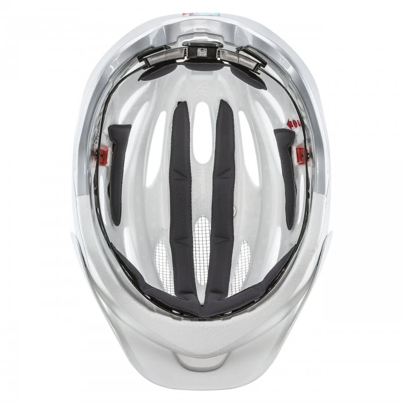 Der UVEX true ist ein echter Allrounder für Damen, denn er bietet Schutz auf der Straße, auf Radwanderwegen und wo Sie sonst gern entspannt mit dem Rad unterwegs sind. Der Helm ist speziell für kleine Köpfe entwickelt und dank der Double-Inmould-Konstruktion (Kunststoff-Hardshell Schale außen, dämpfende EPS-Schale innen) äußerst stabil und zugleich sehr leicht. 17 Ventilationsöffnungen – vorne mit Insektenschutz – bieten ausreichend Belüftung auf hitzigen Strecken. Dank des intelligenten 3D-IAS 3.0 Systems, kann der Helm optimal in Höhe und Weite angepasst werden. Der Pony Tail Cut-Out, eine Aussparung am Hinterkopf, erhöht den Tragekomfort mit gebundenen Haaren spürbar. Für noch mehr Sicherheit, lässt sich der Helm mit dem optional erhältlichen Plug-In LED auch für Touren in der Abenddämmerung ausstatten. Der UVEX true Damenhelm kombiniert eine Top-Passform mit einem stylischen Look, was will die sportliche Dame mehr?