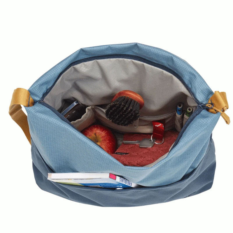 Sie sieht vielleicht schlicht aus, aber sie hat es in sich, denn die VAUDE Lukida ist ein großes Multifunktionswunder. Sie können Sie an den Griffen in der Hand halten oder ganz einfach um die Schulter hängen. Zur sicheren Verwahrung schützt ein Reißverschluss das große und geräumige Hauptfach. Im Inneren befindet sich noch mal eine kleine Sicherheitstasche mit Reißverschluss. Für das Smartphone oder andere Utensilien, die Sie schnell greifbar haben möchten, bieten zwei Fächer mit Druckknopf an der Vorderseite der Tasche genügend Platz. Sei es zum Einkaufen in der Stadt oder zum Baden gehen, diese Tasche ist für jede Gelegenheit passend.
