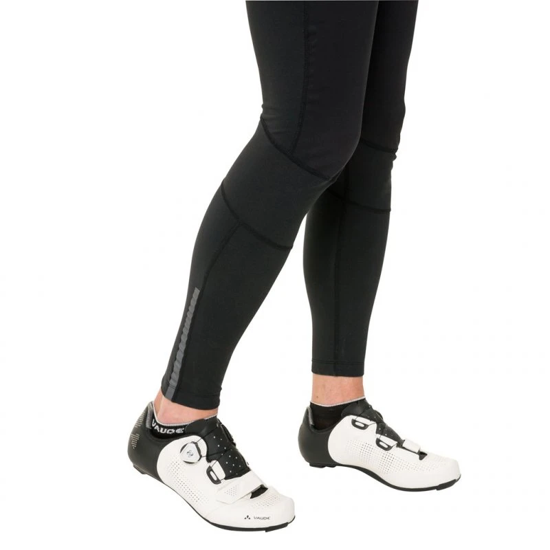 Mit der Mens Kuro Warm Bib Tights von VAUDE haben anspruchsvolle Radsportler auch an wechselhaften, kalten Tagen den richtigen Begleiter. Durch die Perforation der nahtlosen Träger ist beste Atmungsaktivität garantiert. Auch das Mesh-Material im Rückenteil lässt die Luft zirkulieren und bietet durch seinen hohen Anteil an Elasthan optimale Bewegungsfreiheit. Der Übergang zwischen dem luftigen Rückenteil und dem robusten wasserabweisenden und winddichten Außenmaterial beginnt im Bereich der Nieren im unteren Rücken. Ab hier sorgt die angeraute Fleece-Innenseite für Wärme, die sich aber Dank des atmungsaktiven Materials nicht staut, sondern optimal abgeleitet wird. Die ergonomische Schnittführung, die vier-Wege STRETCH Einsätze, das elastische Material im Kniebereich und die Knievorformung geben der Kuro Warm Bib Tights eine ausgezeichnete Bewegungsfreiheit. Das bequeme Sitzpolster bietet optimalen Komfort, auch auf längeren Strecken und die reflektierenden Elemente sorgen für bessere Sichtbarkeit im Straßenverkehr.