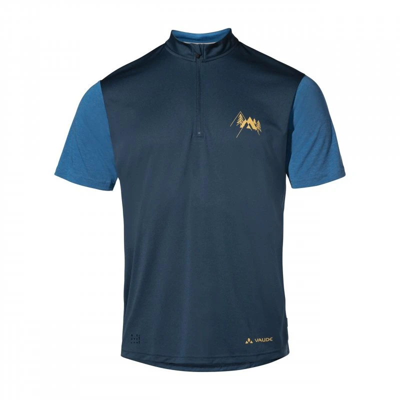 Das bequeme Mens Ledro Shirt von Vaude verbindet Funktionalität mit coolem Design. Das lässig geschnittene Shirt eignet sich optimal für moderates Mountainbikefahren. Das Shirt ist leicht, atmungsaktiv und schnelltrocknend. Doch das sind nur die gängigen Features. Was das Ledro besonders macht, ist der Woll-Anteil. Dieser wirkt feuchtigkeitsregulierend, geruchshemmend und sorgt für einen weichen natürlichen Griff. Dank der Kombination dieser funktionalen Merkmale und des coolen Designs mit den farblich abgesetzten Ärmeln und dem dekorativen Print auf der Brust ist das Ledro die optimale Bereicherung für Ihre Radlergarderobe. Zur Ausstattung gehören außerdem der weiche Stehkragen mit einem kurzen Front-Reißverschluss mit Zipper-Garage und eine seitlich integrierte Rückentasche zur Unterbringung von Wertgegenständen, wenn Sie nach Feierabend nur mal eine kleine Runde mit dem Rad drehen möchten.